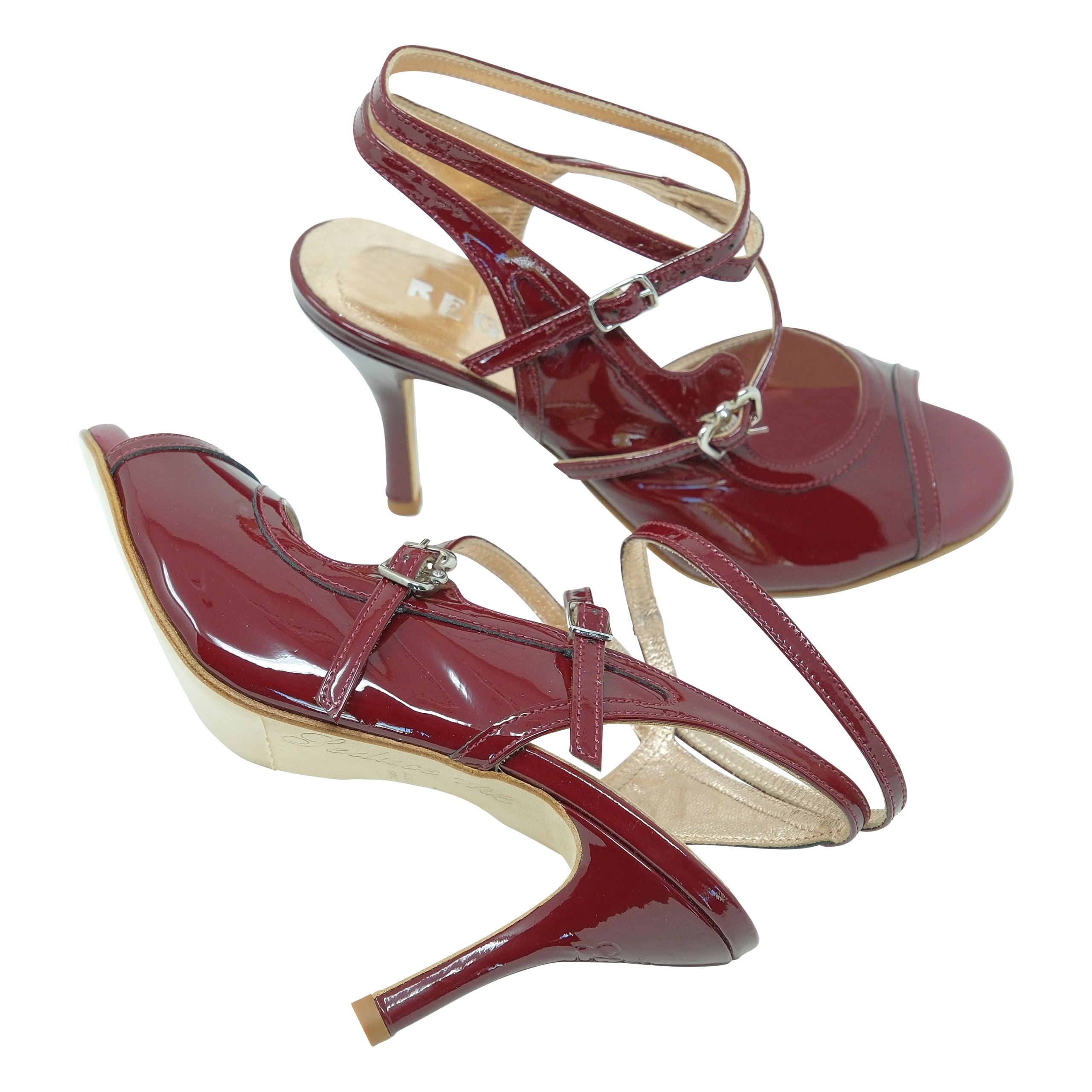 – adorable retro design in burgundy patent leather